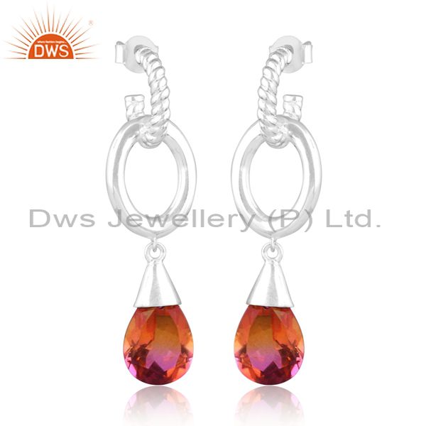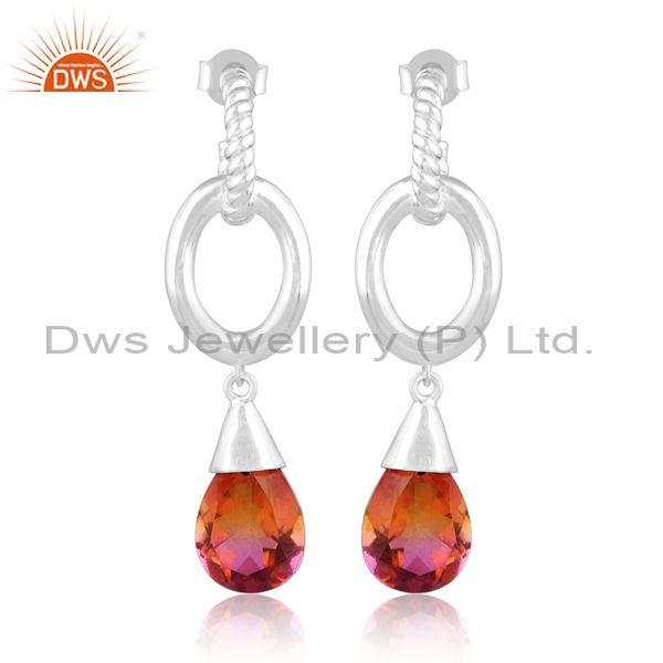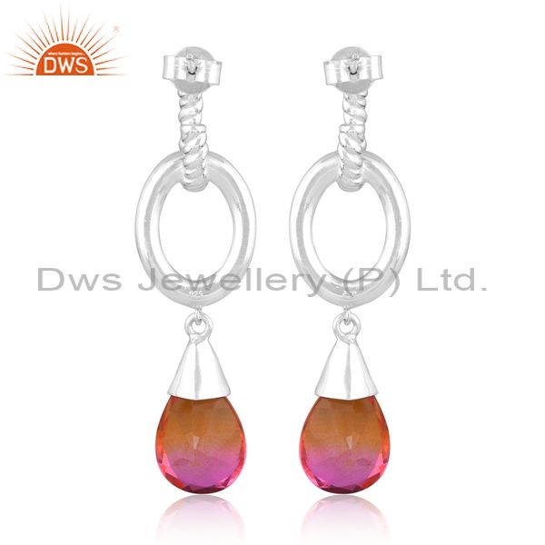 Bio Multitourmaline Doublet Quartz Set Fine Silver Earrings