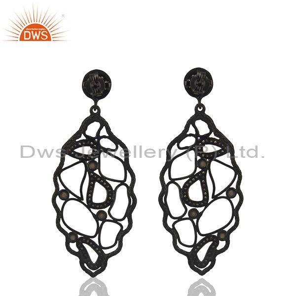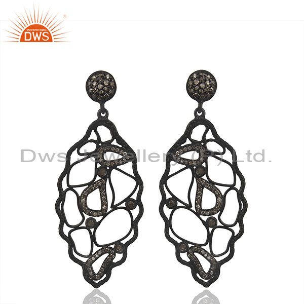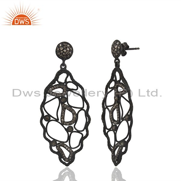 Black 925 Sterling Silver Genuine Pave Diamond Earrings Wholesale