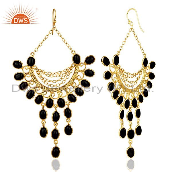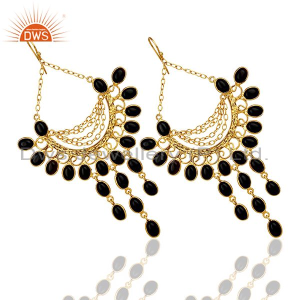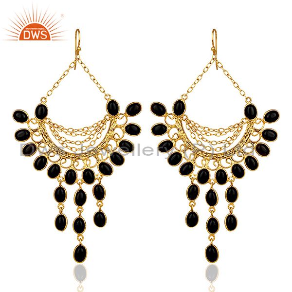 Black Honeycomb Large Dangle Gold Plated Fashion Earring Gift Jewelry