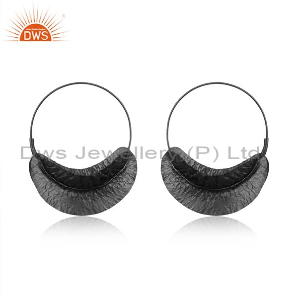 Black On Sterling Silver Handmade Statement Hoop Earrings