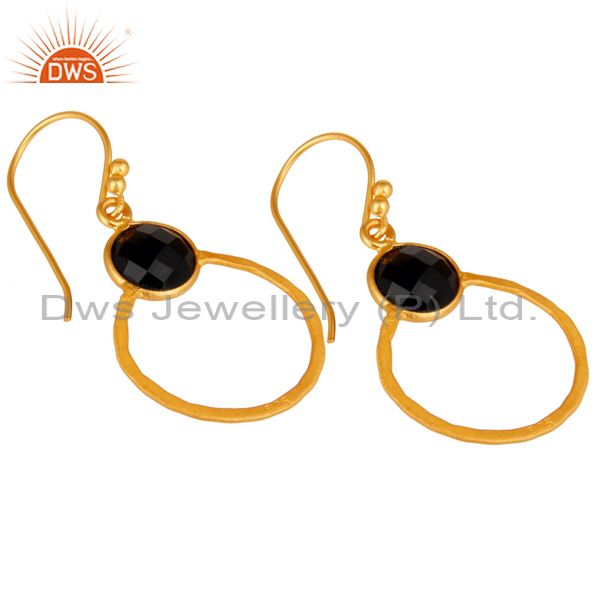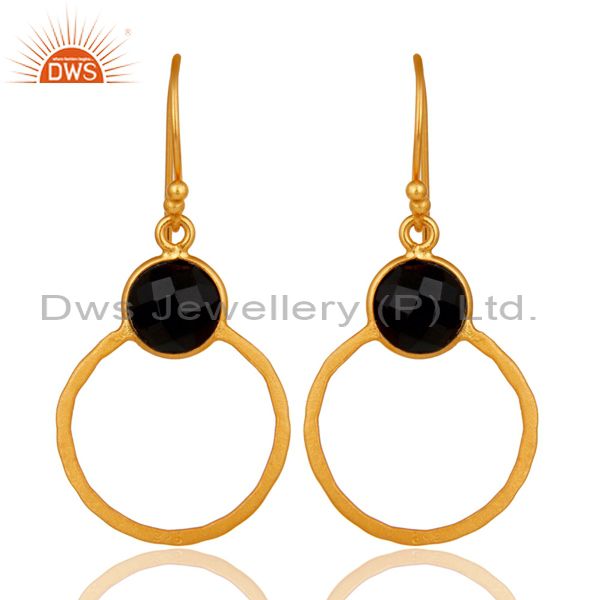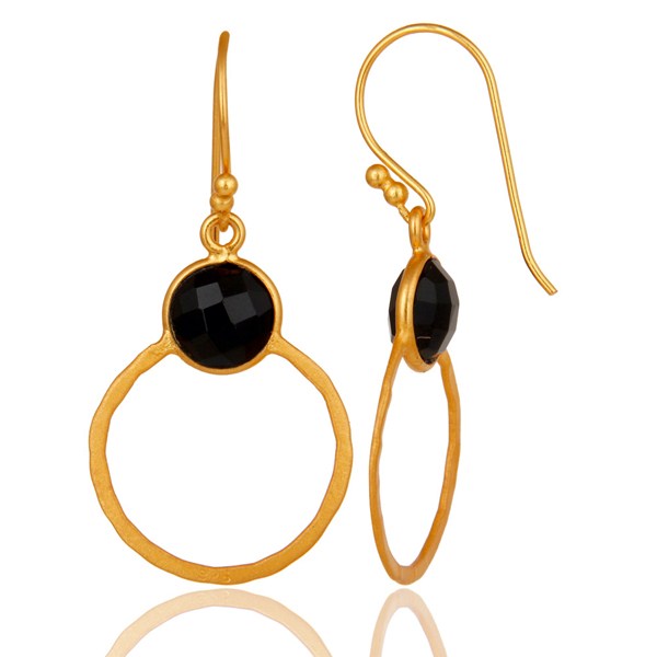 Black Onyx 18K Gold Plated Sterling Silver Circle Earring