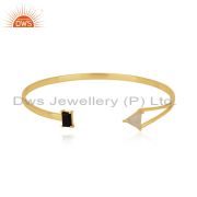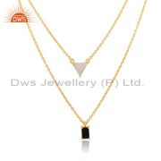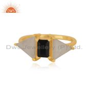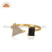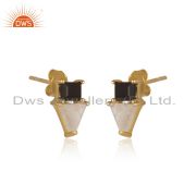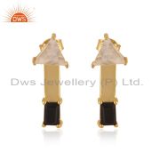 Black Onyx And Rainbow Moonstone Gold Plated 925 Silver Stud Earring Wholesale