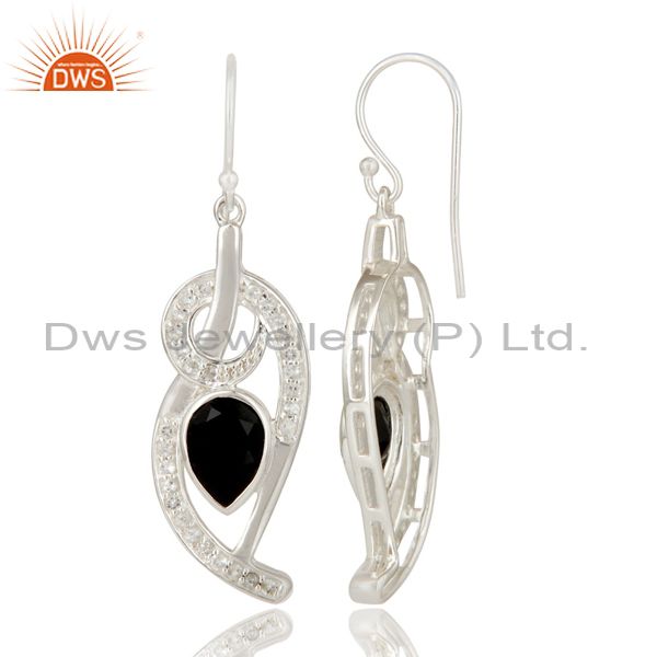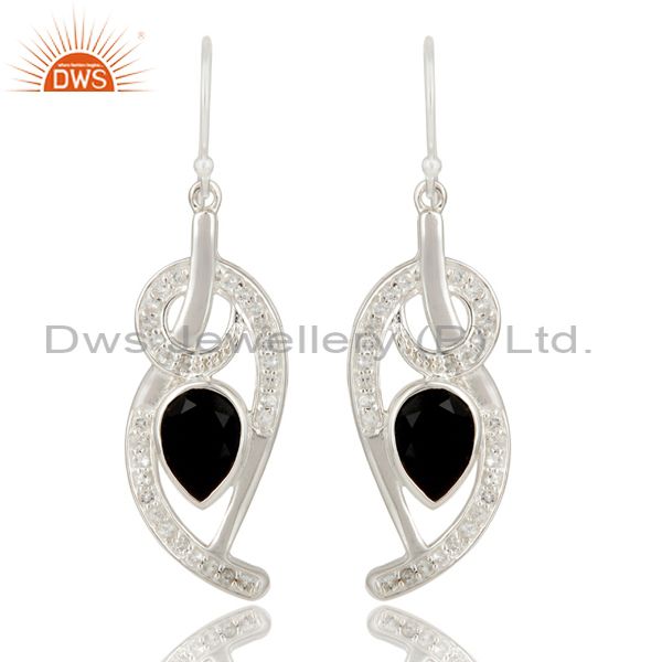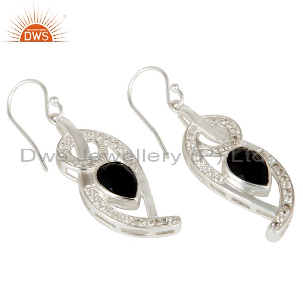 Black Onyx And White Topaz Sterling Silver Designer Earrings