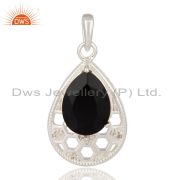 Black Onyx And White Topaz Sterling Silver Fine Gemstone Designer Earrings