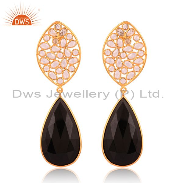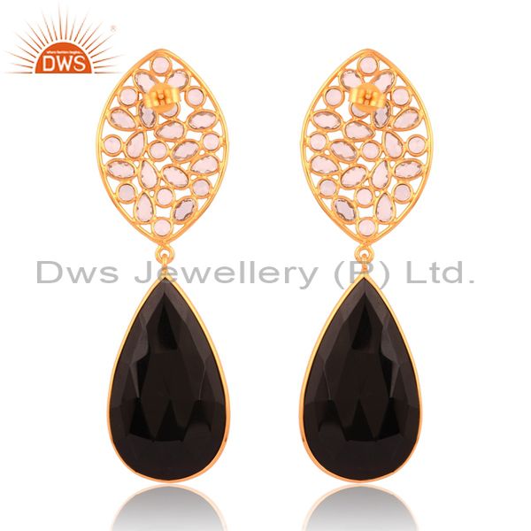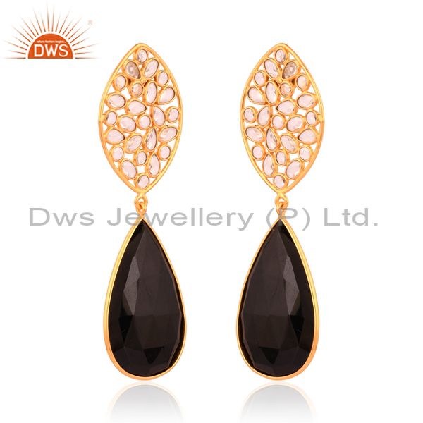 Black Onyx And Zircon 18K Gold Plated Sterling Silver Dangler Earring