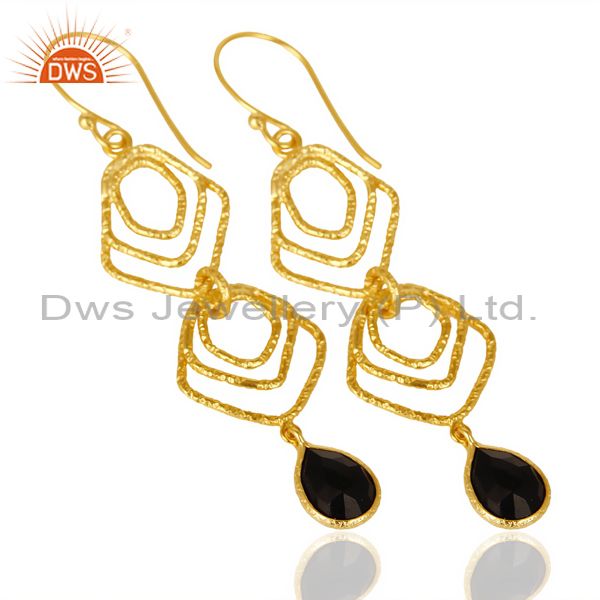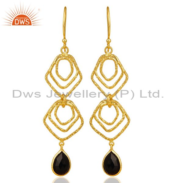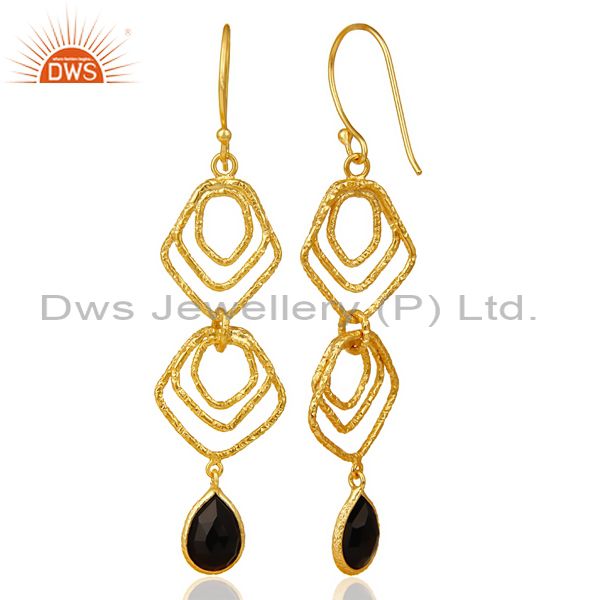 Black Onyx Asymmetrical Dangle 14K Gold Plated 92.5 Sterling Silver Earring