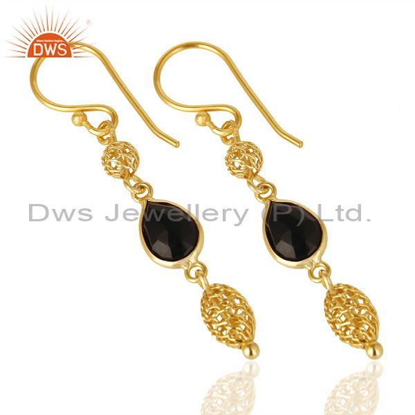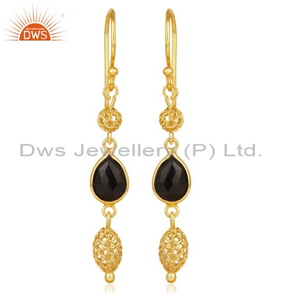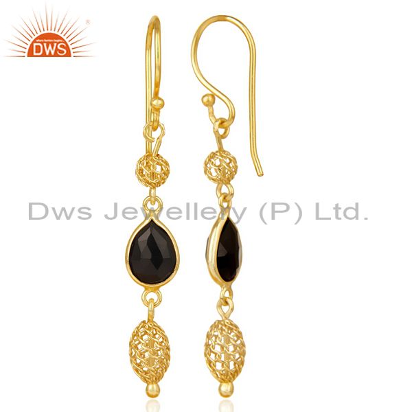 Black Onyx Dangle 14K Yellow Gold Plated 925 Sterling Silver Earrings Jewelry