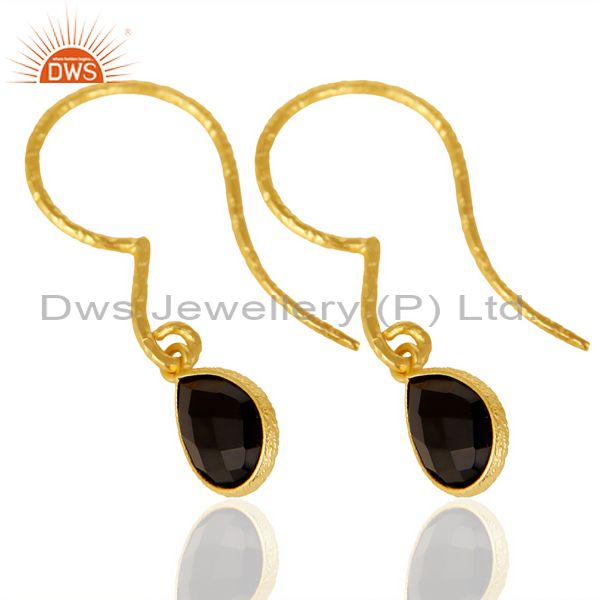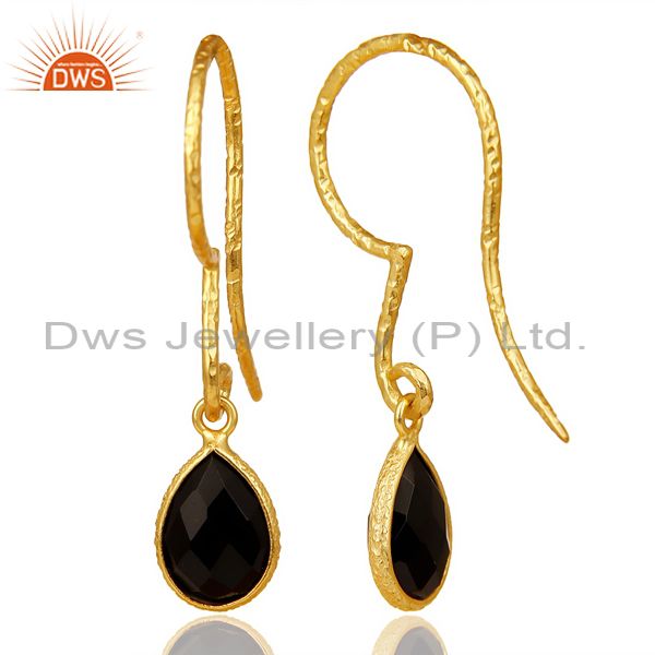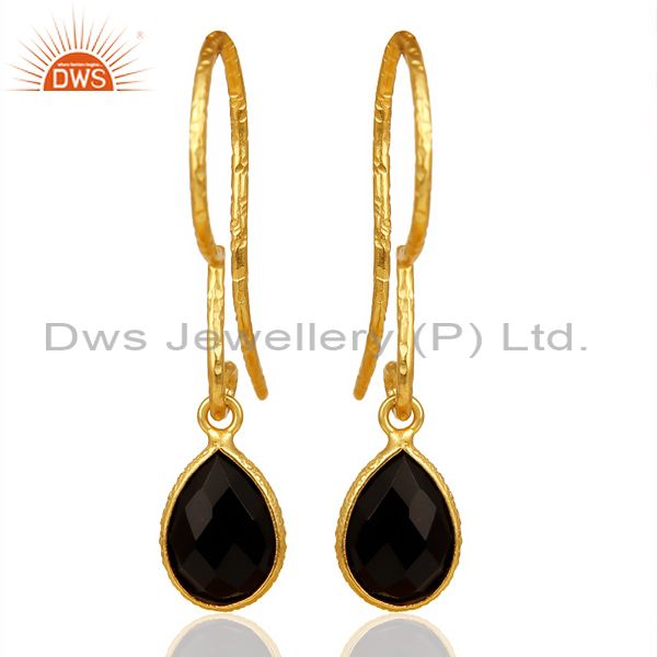 Black Onyx Drop Ear Hoop Gold Plated 92.5 Sterling Silver Earring