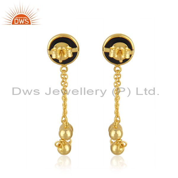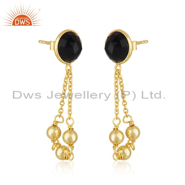 Black Onyx Gemstone 925 Silver Designer Gold Plated Earrings Jewelry