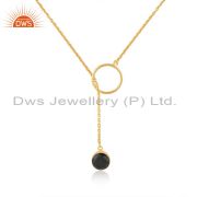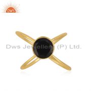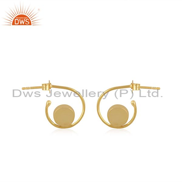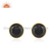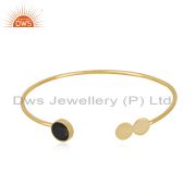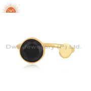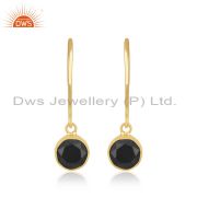 Black Onyx Gemstone 925 Sterling Silver Yellow Gold Plated Hoop Earring Supplier