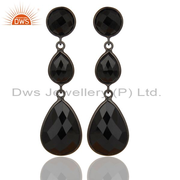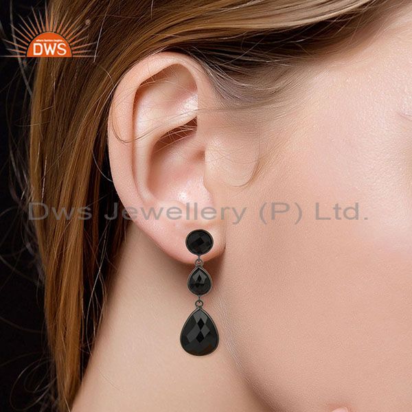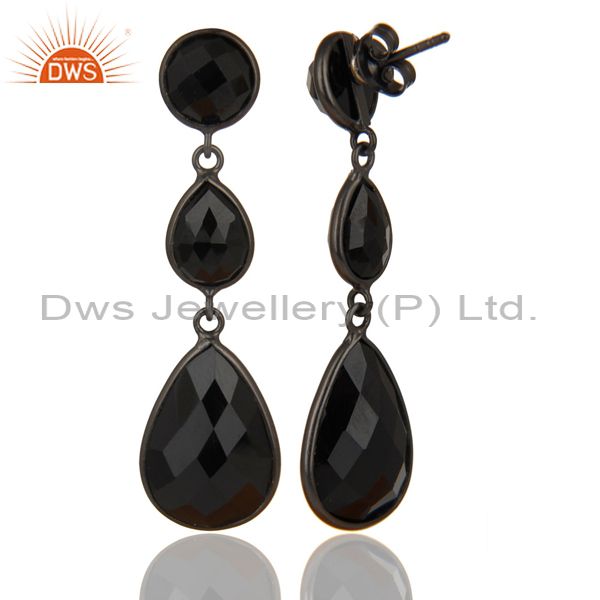 Black Onyx Gemstone Bezel Set Gemstone Earrings Jewelry Made In Black Oxidized