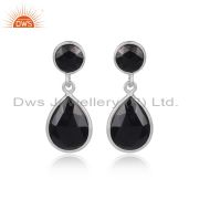 Black Onyx Gemstone Bezel Set Gemstone Earrings Made In 18K Gold Over Silver