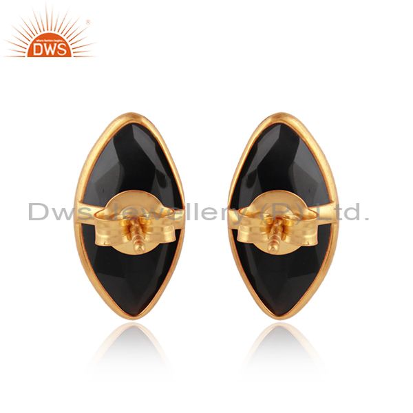 Black Onyx Gemstone Designer Gold Plated Silver Womens Stud Earring