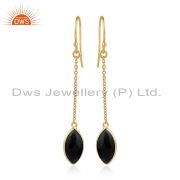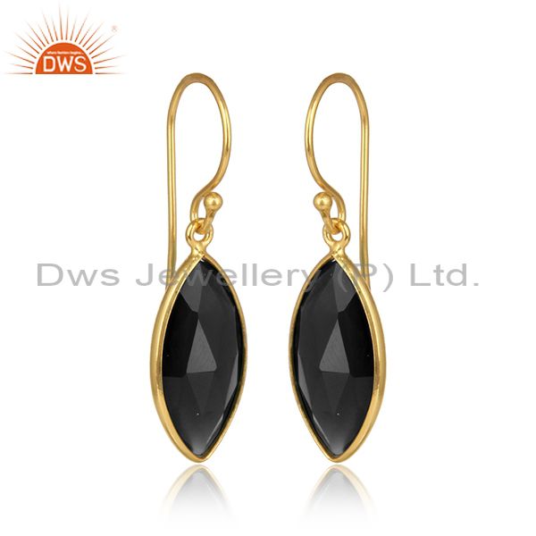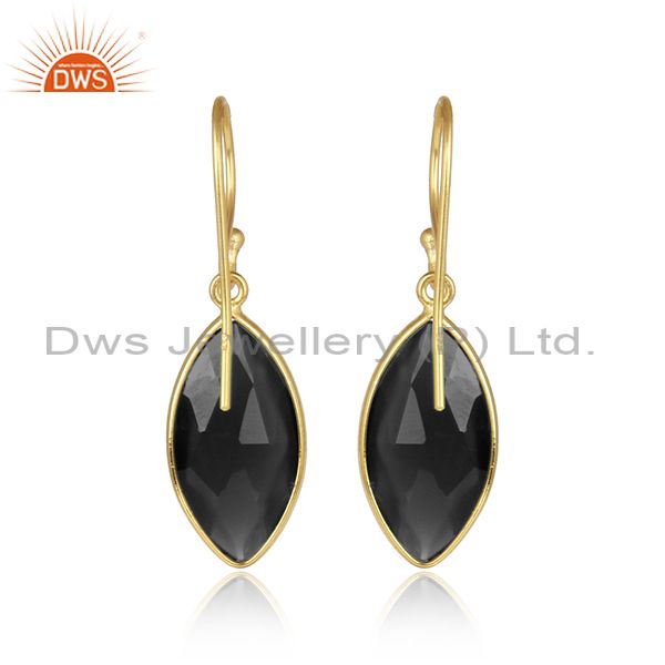 Black Onyx Gemstone Designer Gold Plated Womens Silver Earring