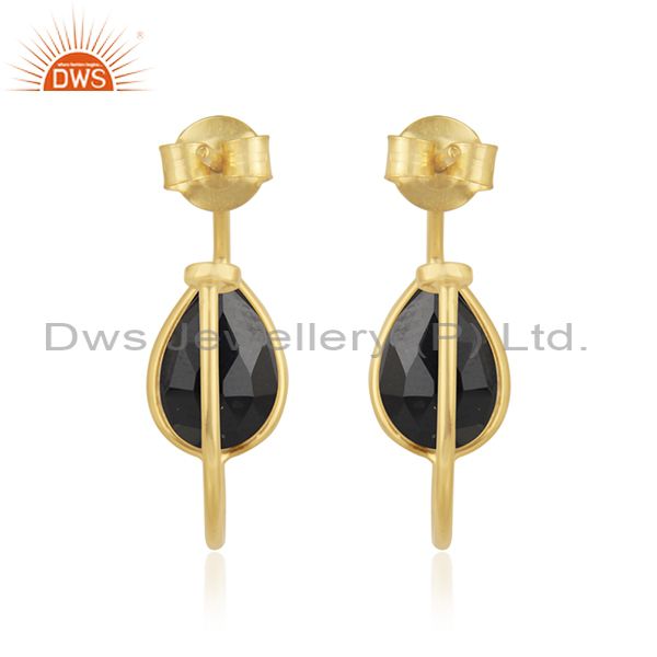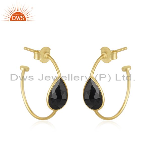 Black Onyx Gemstone Designer Silver Gold Plated Hoop Earrings Jewelry