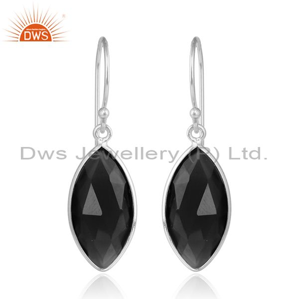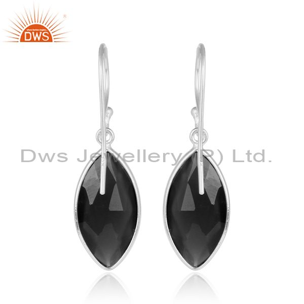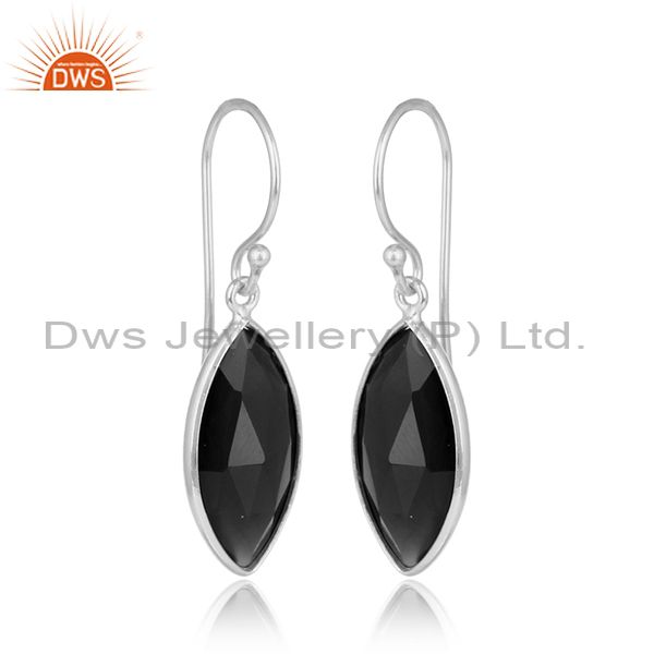 Black Onyx Gemstone Designer Womens Sterling Silver Earrings