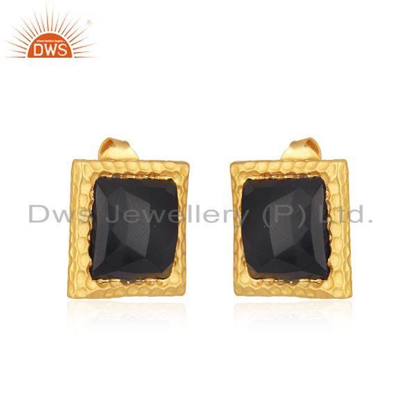 Black Onyx Gemstone Gold Plated Square Girls Stud Earrings
