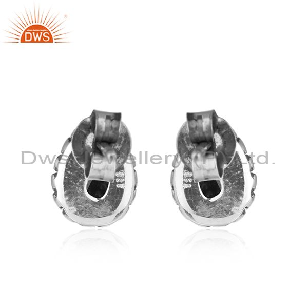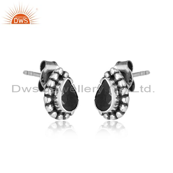 Black Onyx Gemstone Pear Shape Oxidized 925 Silver Stud Earring