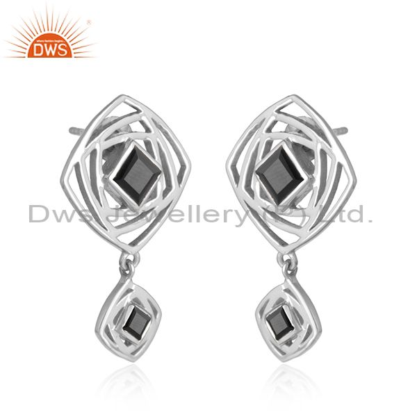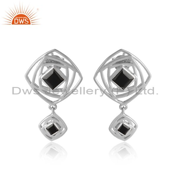 Black Onyx Gemstone Sterling Fine Silver Designer Girls Earrings