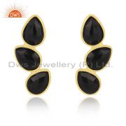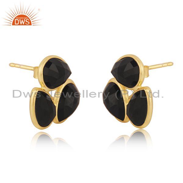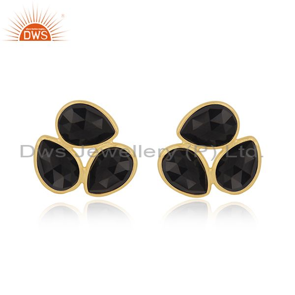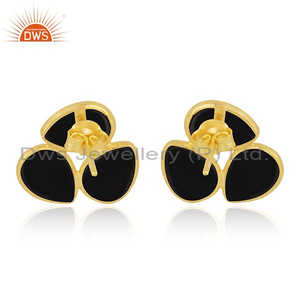 Black Onyx Gemstone Sterling Silver Gold Plated Stud Earring Wholesale
