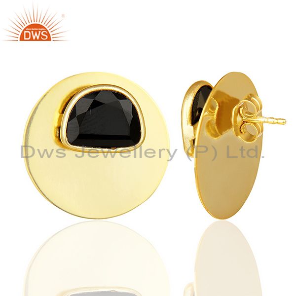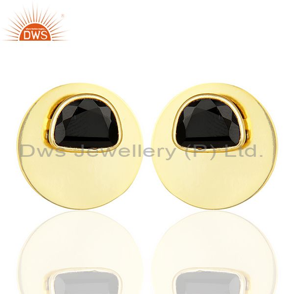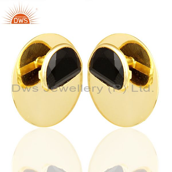 Black Onyx Gemstone Stud 14K Yellow Gold Plated Sterling Silver Earrings Jewelry