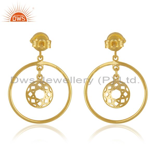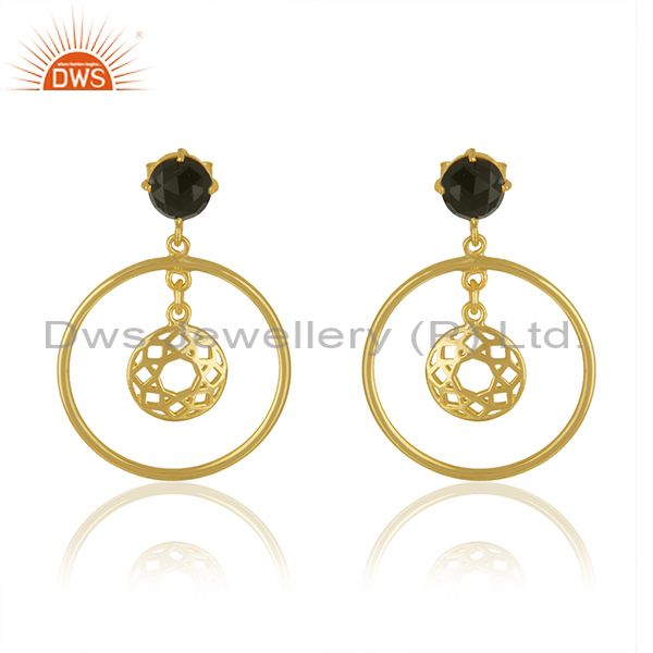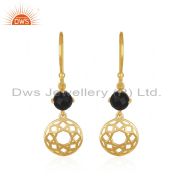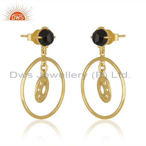 Black Onyx Gemstone Yellow Gold Plated 925 Silver Drop Earrings Wholesaler India