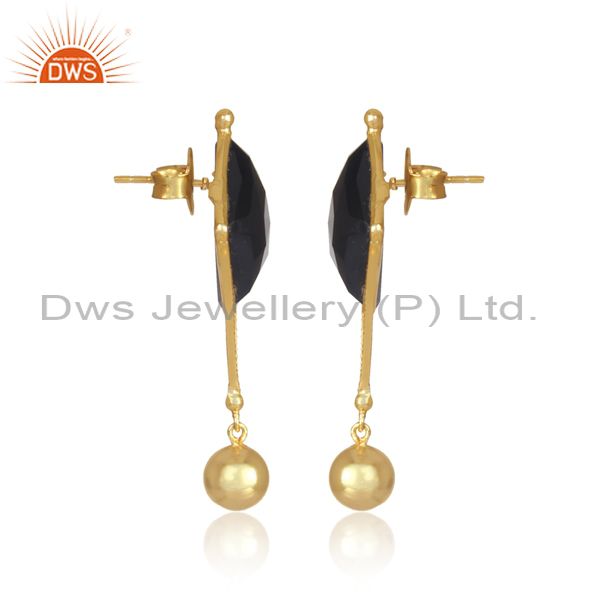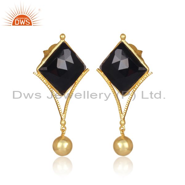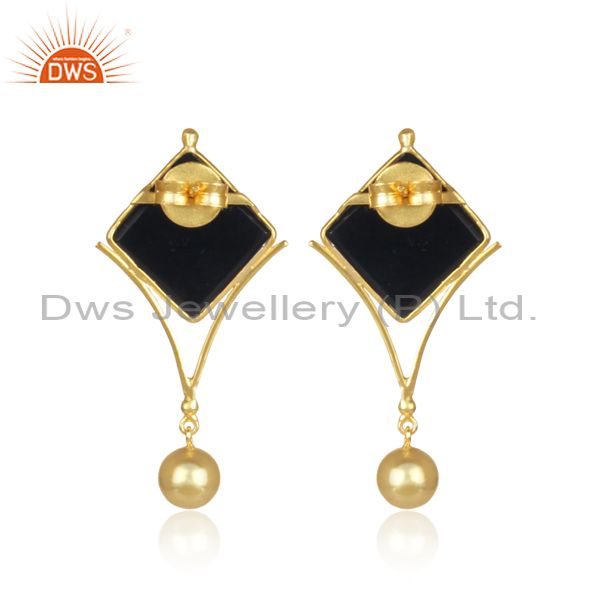 Black Onyx Set Classic Handmade Brass Gold Designer Earrings