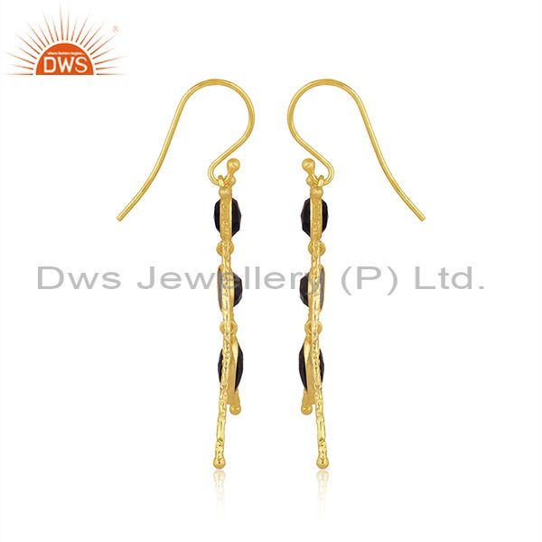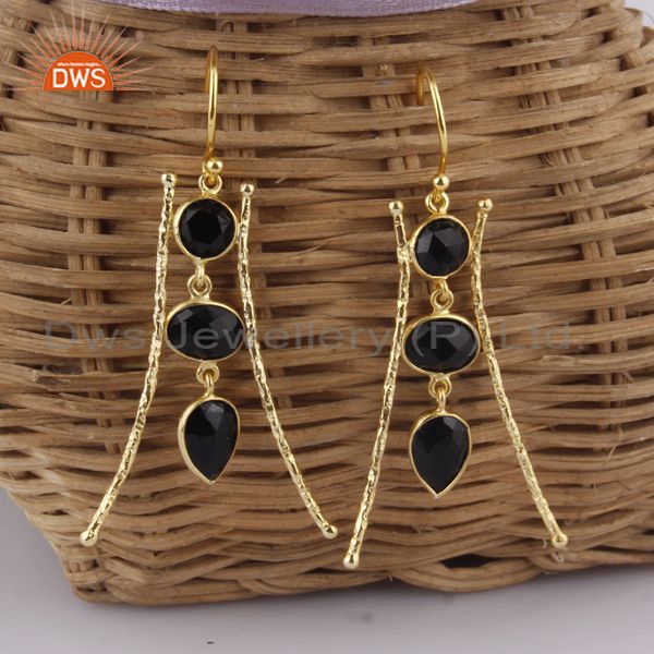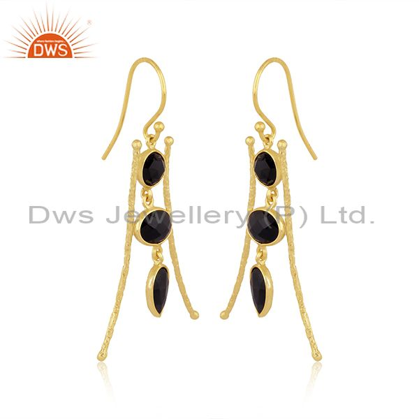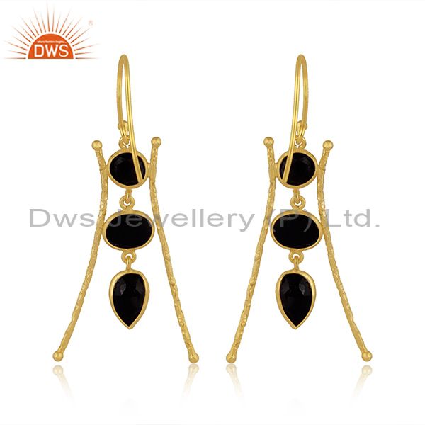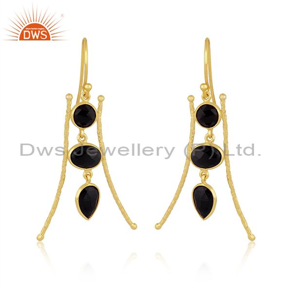 Black Onyx Set Gold On 925 Silver Fancy Designer Earrings