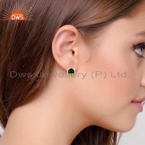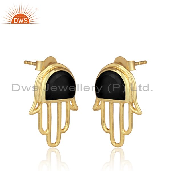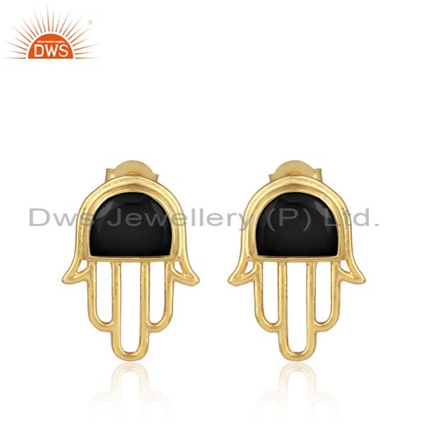 Black Onyx Set Gold On Sterling Silver Hamsa Statement Tops