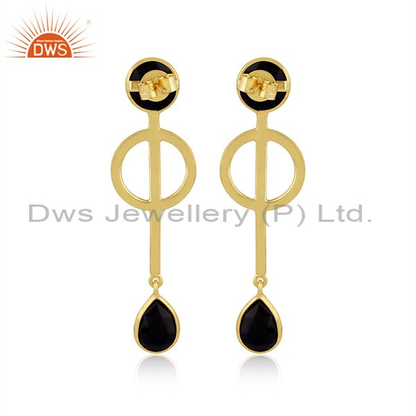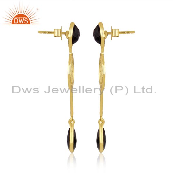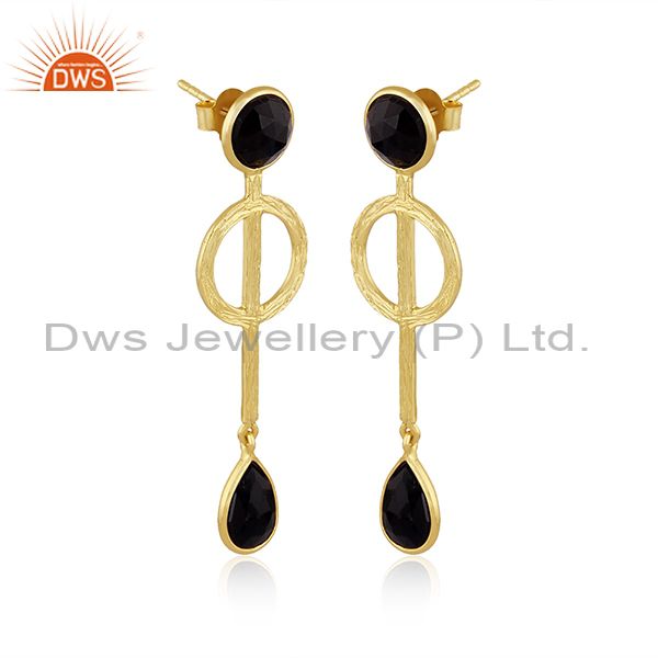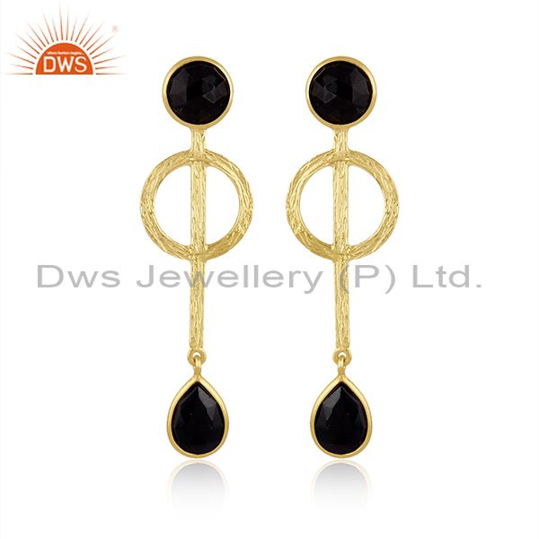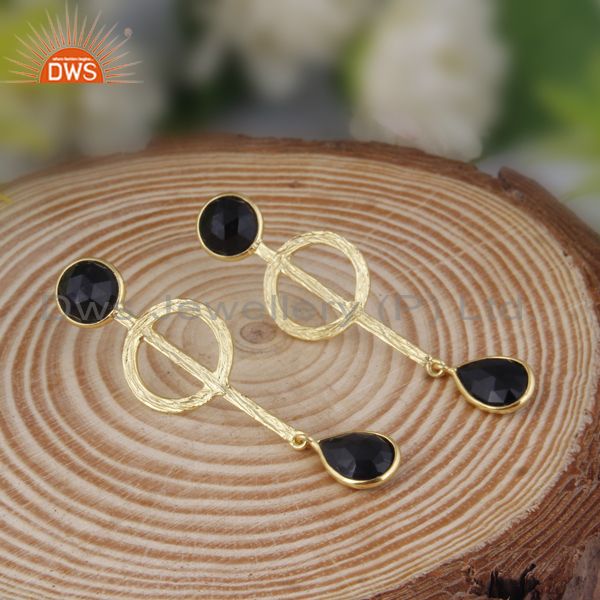 Black Onyx Set Handmade Textured Gold On 925 Silver Earrings