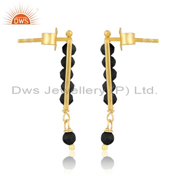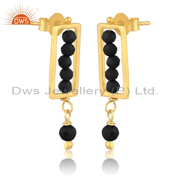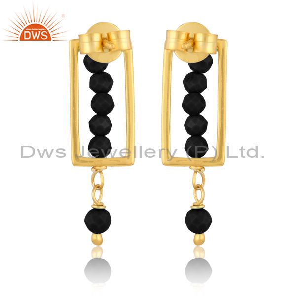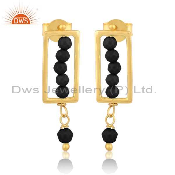 Black Onyx Set Rectangular Gold On Sterling Silver Earrings