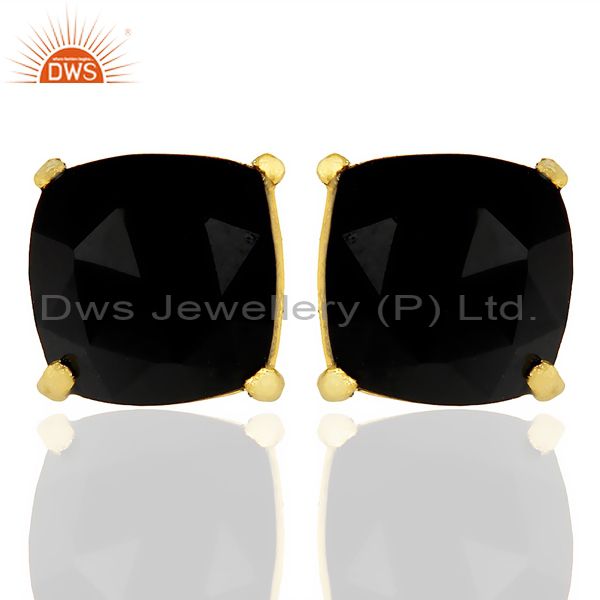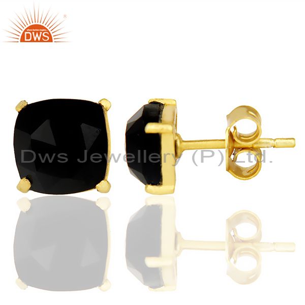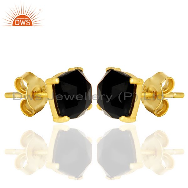 Black Onyx Stone Rose Cut Stud Earring With 14K Gold Over Sterling Silver