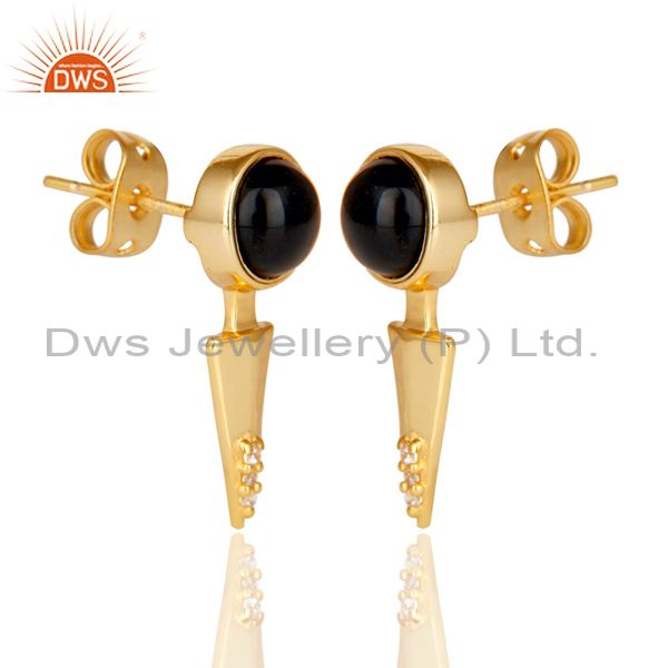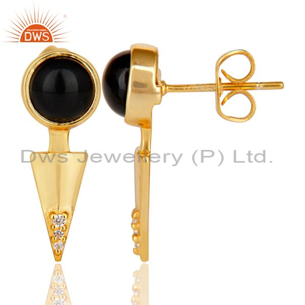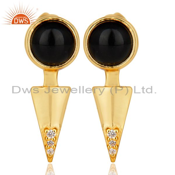 Black Onyx Studded Gold Plated Double Ear Jacket In 92.5 Sterling Silver