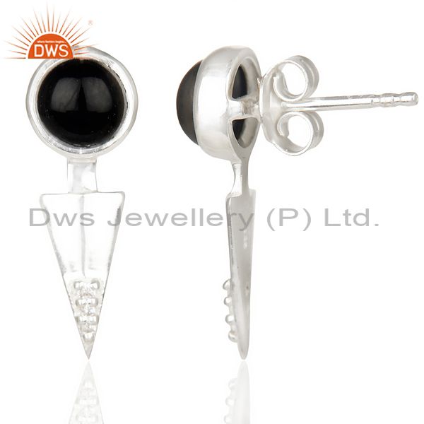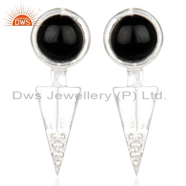 Black Onyx Studded Two Way Earring Double Jacket Earring In Solid Silver