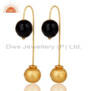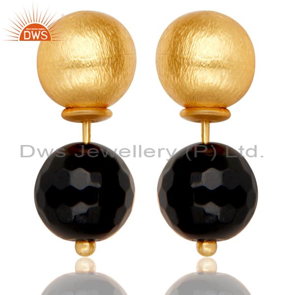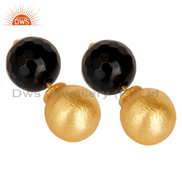 Black Onyx Two Way Stud Ball Stud Post 14 K Gold Plated Fashion Giift Earring