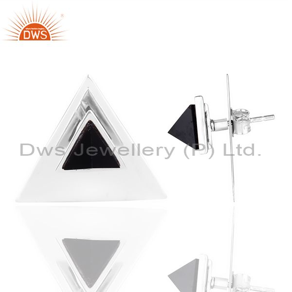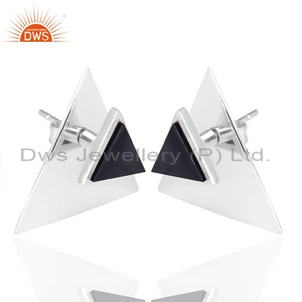 Black Onyx Two Way Stud Triangle White Rhodium 92.5 Sterling Silver Earring