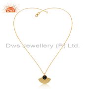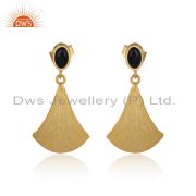 Black Onyx Yellow Gold On 925 Silver Textured Fan Studs