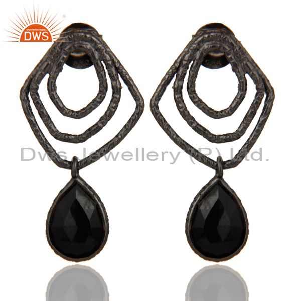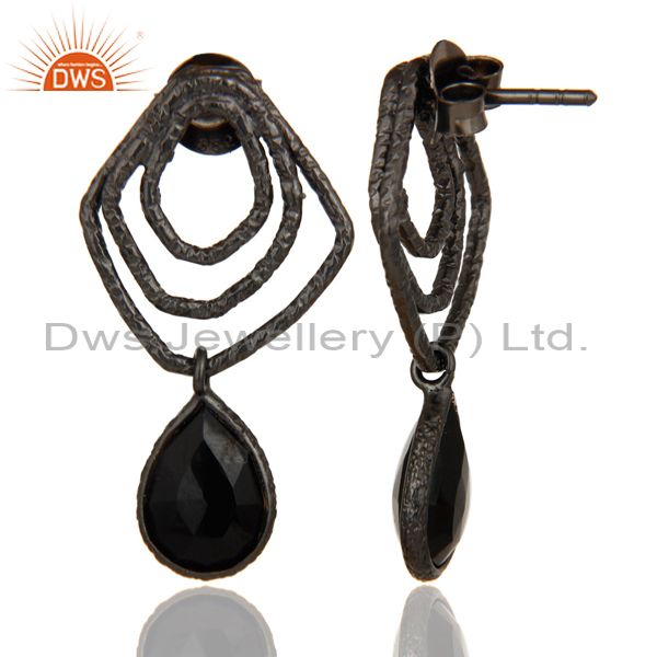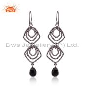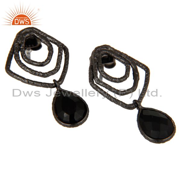 Black Onyx Zig Zag Fashion Drop Earrings With Black Oxidized 925 Sterling Silver