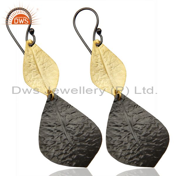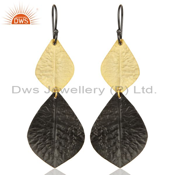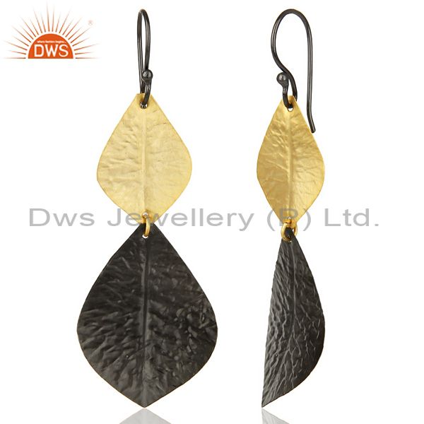Black Oxidized 14K Gold Plated Handmade Leaf Design Dangle Fashion Earrings