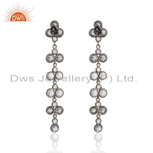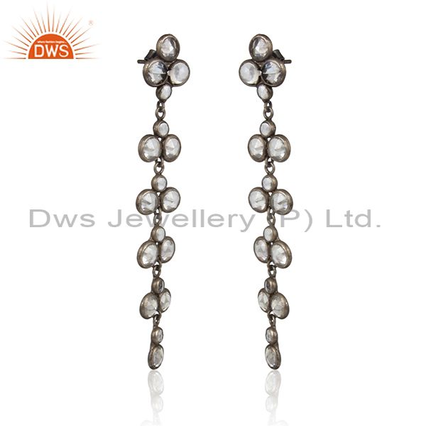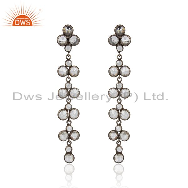 Black Oxidized 925 Silver Designer White Zircon Gemstone Earrings