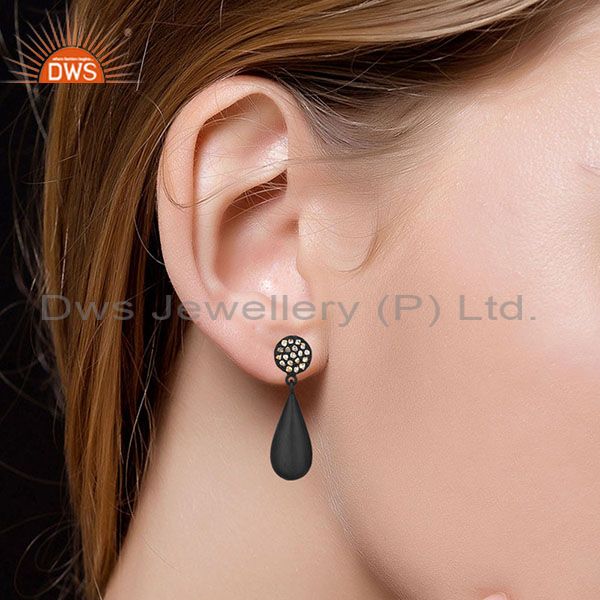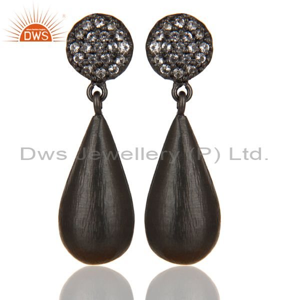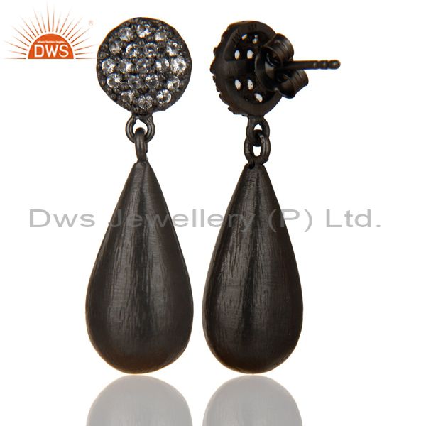 Black Oxidized 925 Sterling Handmade Silver White Topaz Gemstone Drops Earrings
