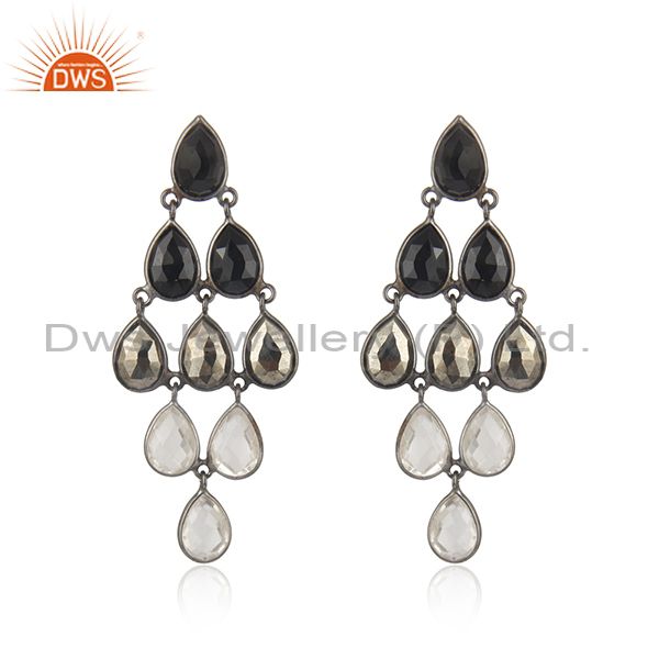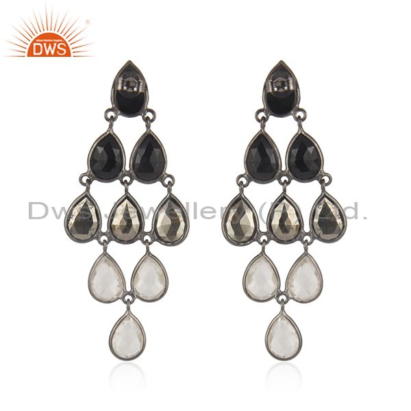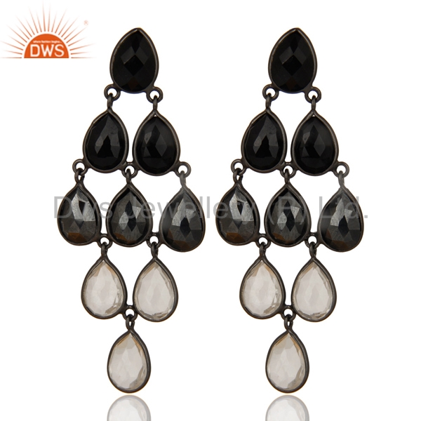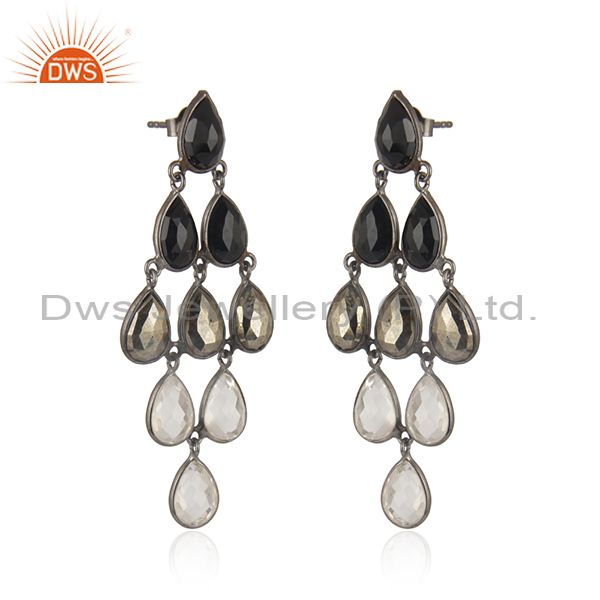 Black Oxidized 925 Sterling Silver Black Onyx, Hematite & Crystal Quartz Earring