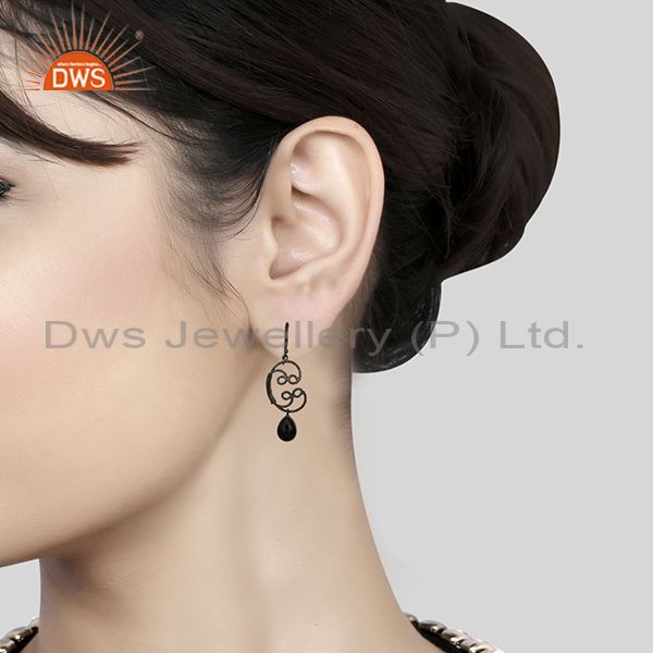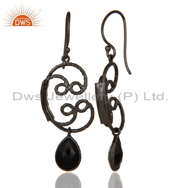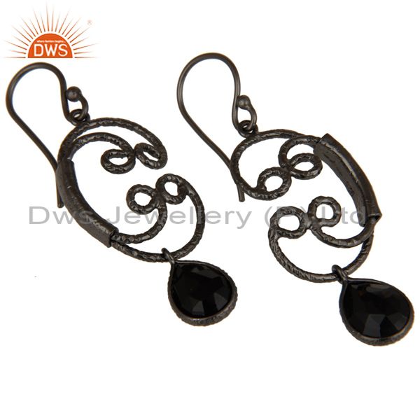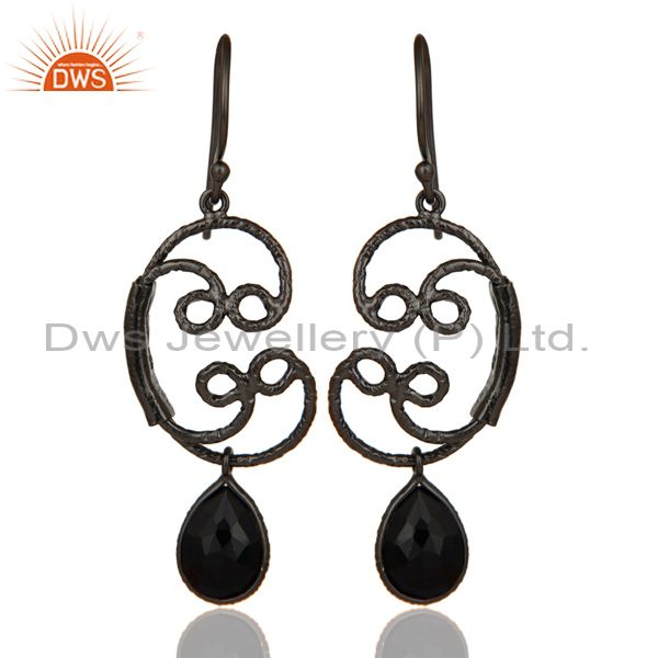 Black Oxidized 925 Sterling Silver Designer Black Onyx Bezel Set Drops Earrings