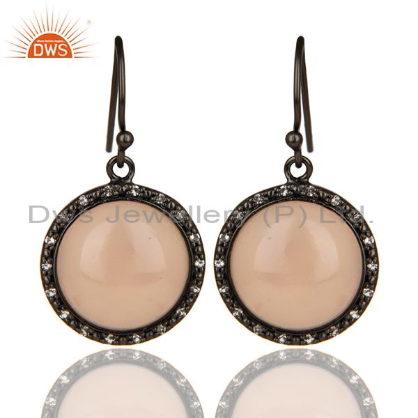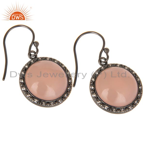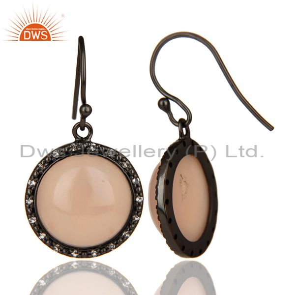 Black Oxidized 925 Sterling Silver Dyed Chalcedony & White Topaz Drops Earrings