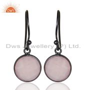 Black Oxidized 925 Sterling Silver Dyed Chalcedony Bezel Set Drops Earrings