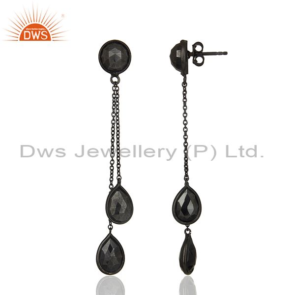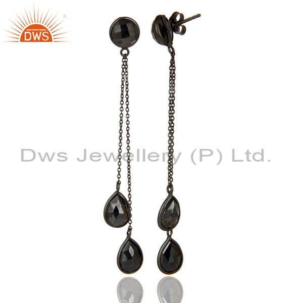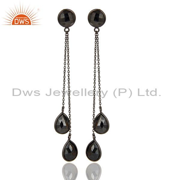 Black Oxidized 925 Sterling Silver Faceted Hematite Chain Link Dangle Earrings