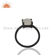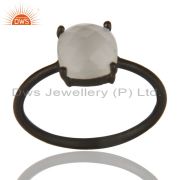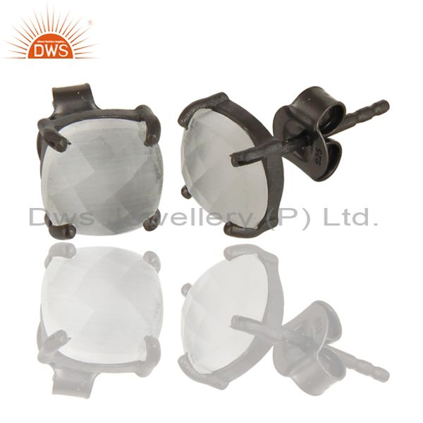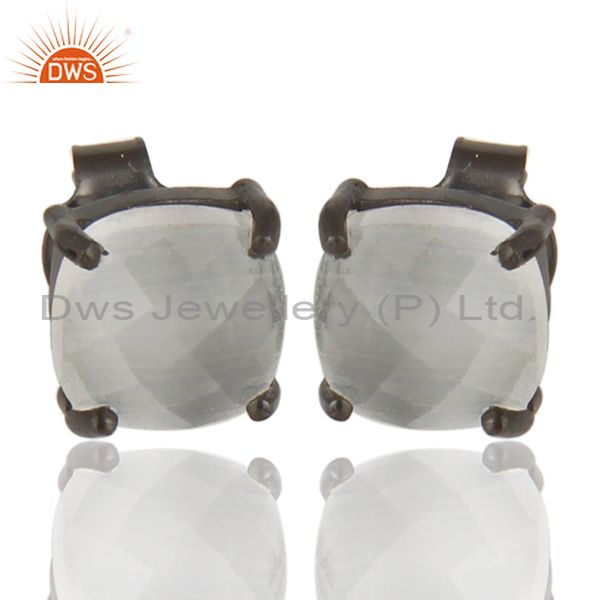 Black Oxidized 925 Sterling Silver Faceted White Moonstone Studs Earrings