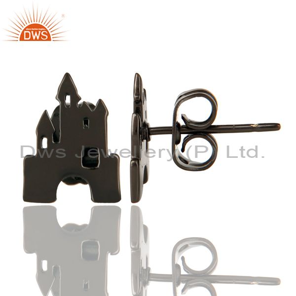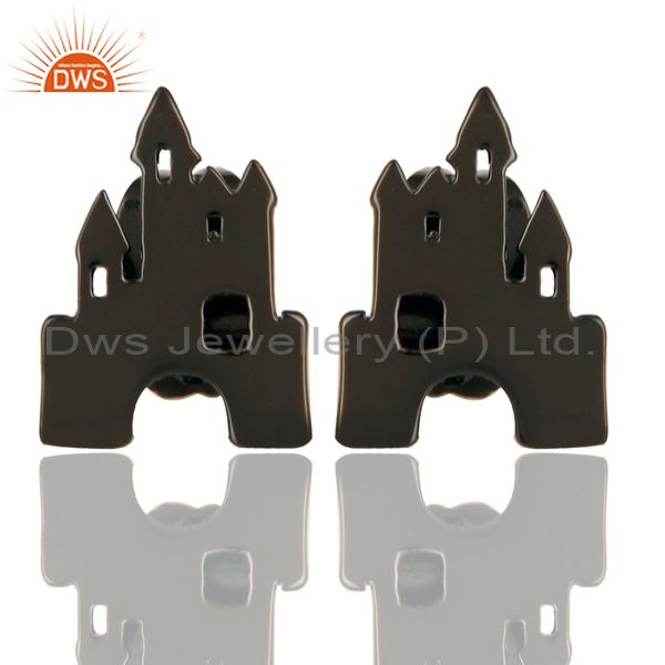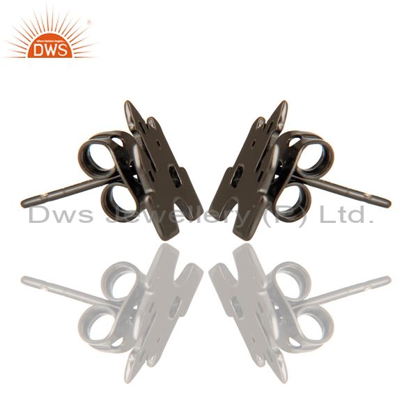 Black Oxidized 925 Sterling Silver Handmade Art Deco Design Studs Earrings