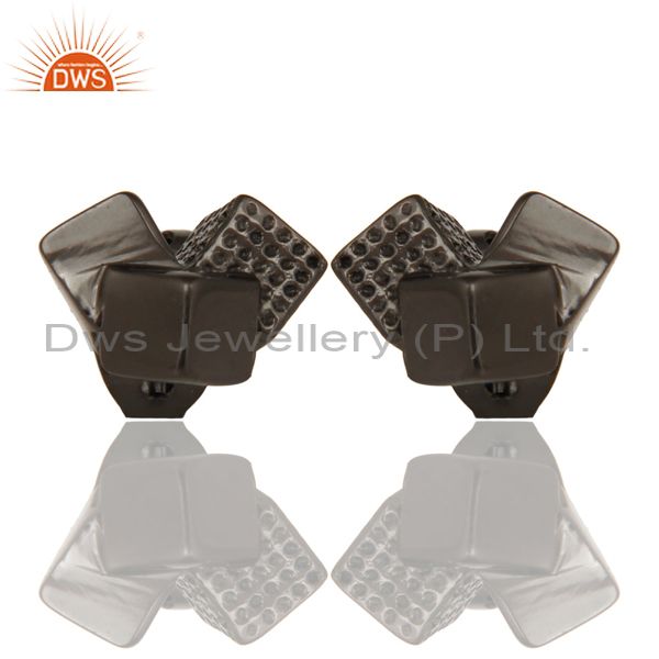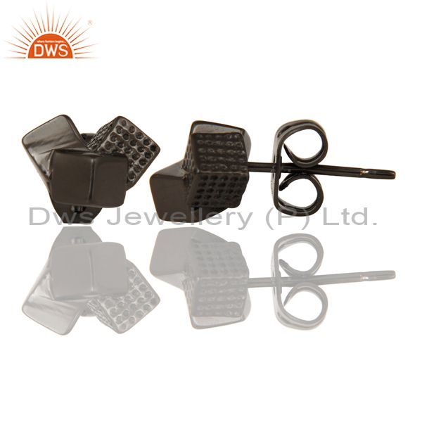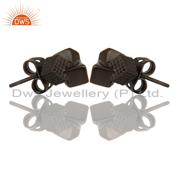 Black Oxidized 925 Sterling Silver Handmade Art Little Studs Fashion Earrings