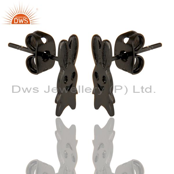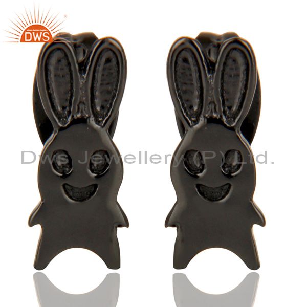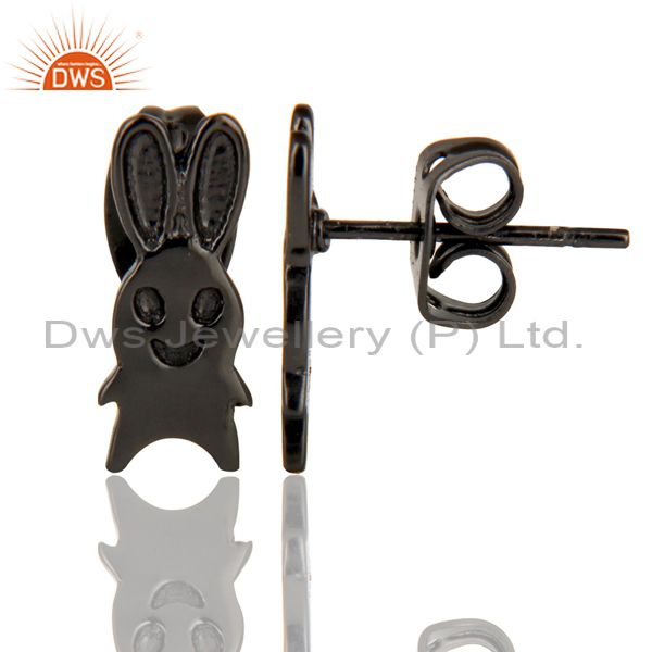 Black Oxidized 925 Sterling Silver Handmade Art Rabbit Design Studs Earrings